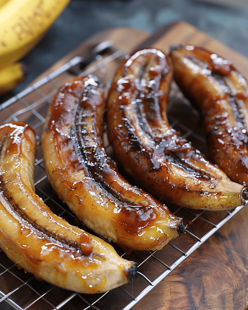 Top the finished bananas with chopped toasted nuts, shredded coconut, or granola for added texture.