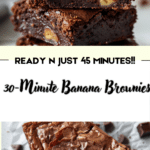 These 30-minute banana brownies are a rich, fudgy dessert with the natural sweetness of ripe bananas. They’re quick to make and perfect for using up overripe bananas, with a soft, moist texture and deep chocolate flavor.