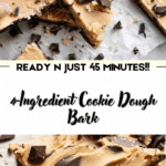 This 4‑ingredient cookie dough bark is a delightful hybrid of cookie dough and chocolate bark — easy to make, freezer‑friendly, and flexible for dietary preferences. Whether you’re craving a quick sweet treat after dinner or prepping snacks ahead of time, this recipe delivers flavor, texture, and simplicity. Enjoy the indulgence without the fuss!