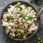 This 4‑ingredient chicken salad proves that simple doesn’t mean boring. With minimal prep and bold flavor from chili crisp, it’s a crowd‑pleasing dish perfect for lunch boxes, quick dinners, or make‑ahead meals. Whether you stick to the basics or customize it with extra herbs and crunch, you’ll find this recipe a delicious easy‑going favorite.