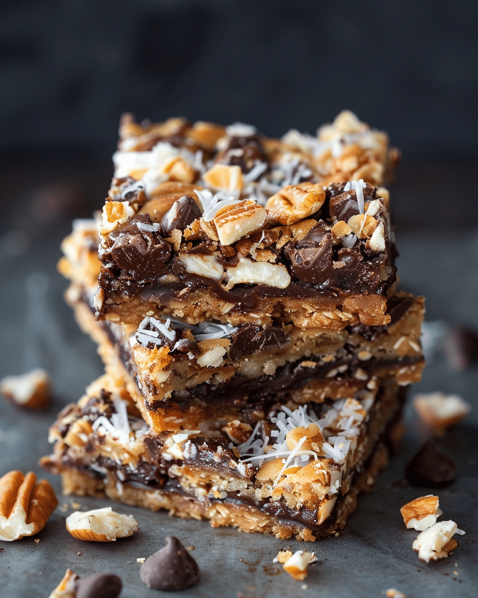You can easily switch up these bars to match your taste or use what you already have in the pantry. Walnuts or almonds can be used instead of pecans for a different crunch. White chocolate chips, peanut butter chips, or dark chocolate chips can replace one of the chip layers for a new flavor combination. For a slightly less sweet version, try using unsweetened coconut. A pinch of sea salt on top before baking can also balance the sweetness nicely.