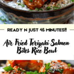 Air Fried Teriyaki Salmon Bites Rice Bowl is a simple yet impressive meal that combines crisp, tender salmon with fresh vegetables, fluffy rice, and a creamy finishing drizzle. It is quick enough for weeknights, customizable enough for different tastes, and satisfying enough to become a regular part of your meal rotation. Whether you serve it fresh for dinner or prep it ahead for lunch, this bowl delivers a delicious balance of texture, flavor, and convenience.