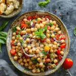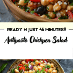 A vibrant and hearty Antipasto Chickpea Salad loaded with Mediterranean flavors, featuring chickpeas, salami, mozzarella, olives, and a zesty Italian dressing. Perfect as a main dish or side, it’s quick to prepare and packed with protein.
