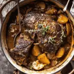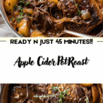 This apple cider pot roast is a cozy, flavorful dish where tender beef chuck roast is slow-cooked with apple cider, vegetables, and herbs for a comforting meal with a touch of sweetness.