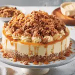This apple crisp cheesecake is a show‑stopper dessert that brings warmth and comfort to any table. Its creamy layers and crisp oat topping make each slice a perfect blend of textures and flavors. Whether you’re making it for a special occasion or simply treating yourself, it’s sure to become a favorite fall and winter dessert.