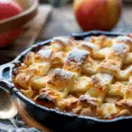 This recipe transforms simple ingredients into something magical. It combines the best of two beloved desserts — apple pie and bread pudding — for a dessert that’s richer and more comforting than either on its own. The cinnamon‑apple filling gives a cozy, autumnal flavor, while the custardy bread soaks up all the delicious juices, resulting in a soft, gooey interior and crisp top. Serve it warm, and the contrast with melting ice cream makes each bite truly irresistible.