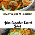 This Asian Cucumber Carrot Salad is a quick and refreshing dish that brings bright, crunchy vegetables together with a tangy sesame‑lime dressing. Easy to prepare and full of flavor, it’s ideal for warm days, weeknight meals, or whenever you want a healthy, satisfying side.