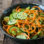 A refreshing and crunchy Asian-inspired cucumber carrot salad, tossed in a flavorful sesame-soy dressing. Perfect as a light side dish or appetizer.