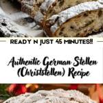 This authentic German Stollen is a festive, flavorful holiday bread that’s worth the time and effort. With its rich fruit, warm spices, and optional marzipan center, it’s a treat that improves with age and makes a perfect centerpiece for Christmas morning or cozy winter gatherings. Enjoy baking and sharing this classic tradition in your own home.