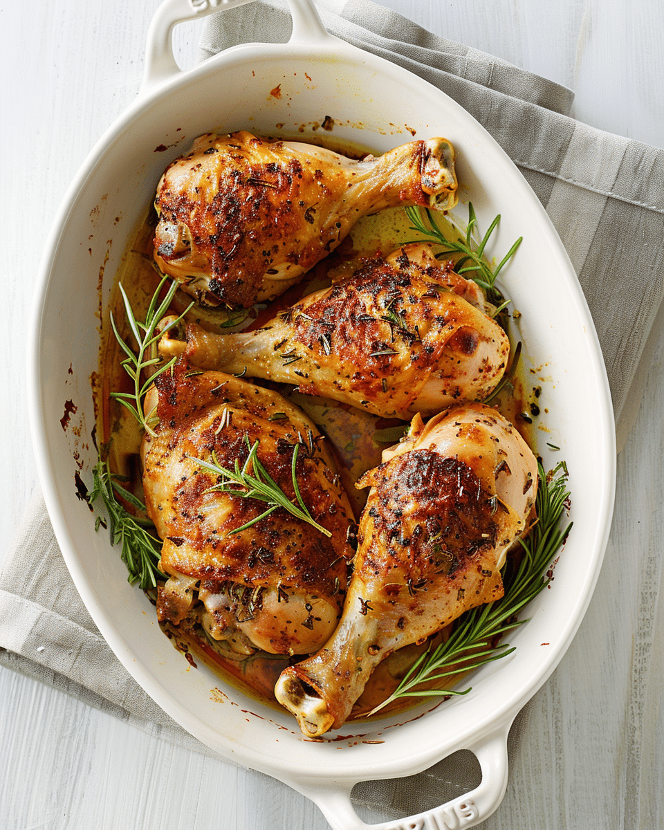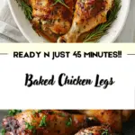 Baked chicken legs are a simple, crispy, and satisfying dinner option that requires minimal prep. With basic seasonings, high oven heat, and a short resting time, you get juicy chicken with deliciously crisp skin every time.
