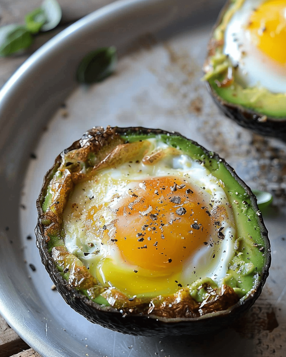 For a breakfast‑bowl version, scoop baked avocado & egg out and serve over toast or grains.