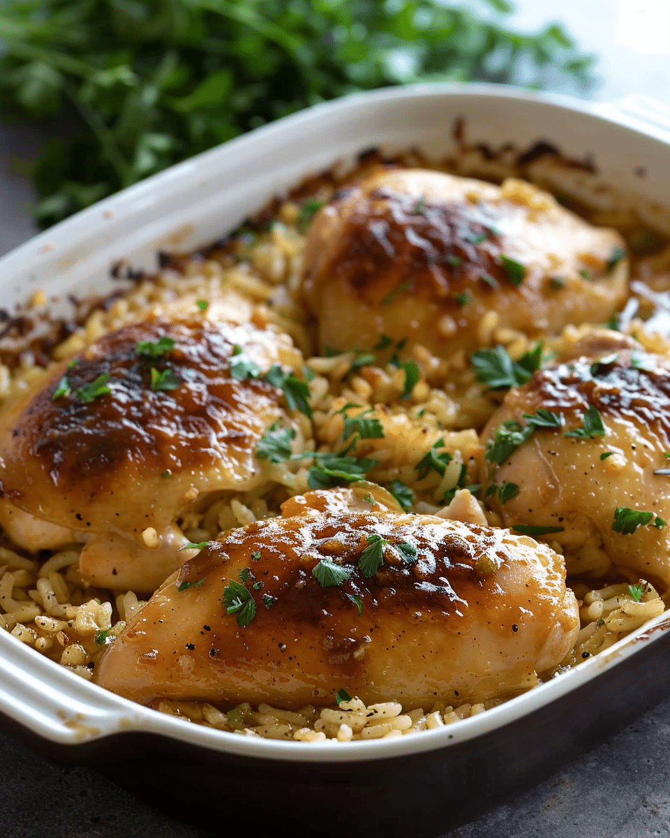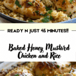 This Baked Honey Mustard Chicken and Rice is a simple, one-pan meal featuring tender chicken thighs baked over flavorful honey mustard rice. Easy to prepare and packed with comforting flavors, it’s perfect for busy weeknights.