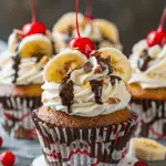These cupcakes are the perfect crowd‑pleaser because they combine familiar comfort flavors with a whimsical twist. The soft banana cupcake pairs beautifully with the silky buttercream and chocolate ganache, while the sprinkles and cherry add that classic banana split look. They’re great for birthdays, potlucks, or just a fun dessert to make with friends.