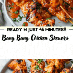 Bang Bang Chicken Skewers are an irresistible blend of sweet, spicy, and creamy flavors with juicy chicken at the center. Whether you’re making them for dinner, a party, or meal prep, these skewers are guaranteed to satisfy. Quick, easy, and packed with flavor, they’ll become a go-to in your kitchen.