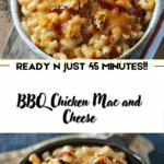 A delicious fusion of smoky BBQ chicken and creamy mac and cheese, this quick and comforting dish is perfect for weeknight dinners or crowd-pleasing meals.