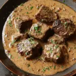 This recipe is a great choice when you want something hearty without making a complicated sauce from scratch. The beef cooks quickly, the mustard adds just the right amount of sharpness, and the cream softens everything into a rich, balanced finish. The buttery rice with bay leaves, garlic, and thyme turns it into a complete meal that feels both cozy and refined. It is also easy to plate beautifully, making it ideal for casual dinners and more special occasions alike.