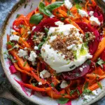 Beets and Carrots Salad with Burrata is a celebration of color, flavor, and wholesome ingredients. With its tender roasted vegetables, creamy cheese, and aromatic rosemary dressing, it offers a perfect balance of sweetness and richness. Whether you’re preparing a weeknight dinner or hosting guests, this salad is sure to impress while remaining simple and satisfying.