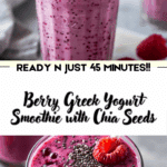 This Berry Greek Yogurt Smoothie with Chia Seeds is an easy, nutritious, and versatile recipe that works whether you’re sipping it on the go or turning it into a bowl with toppings. With minimal prep time and simple ingredients, it’s a great go‑to for breakfast or a snack any time of day. Give it a try and enjoy the creamy berry goodness!