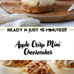 These Apple Crisp Mini Cheesecakes are a delightful, easy-to-make dessert that captures the cozy flavors of autumn — creamy cheesecake, spiced apples, and crunchy oat streusel in every bite. Perfect for holiday gatherings, potlucks, or cozy nights at home. Once you try them, they’re likely to become a regular in your dessert rotation.