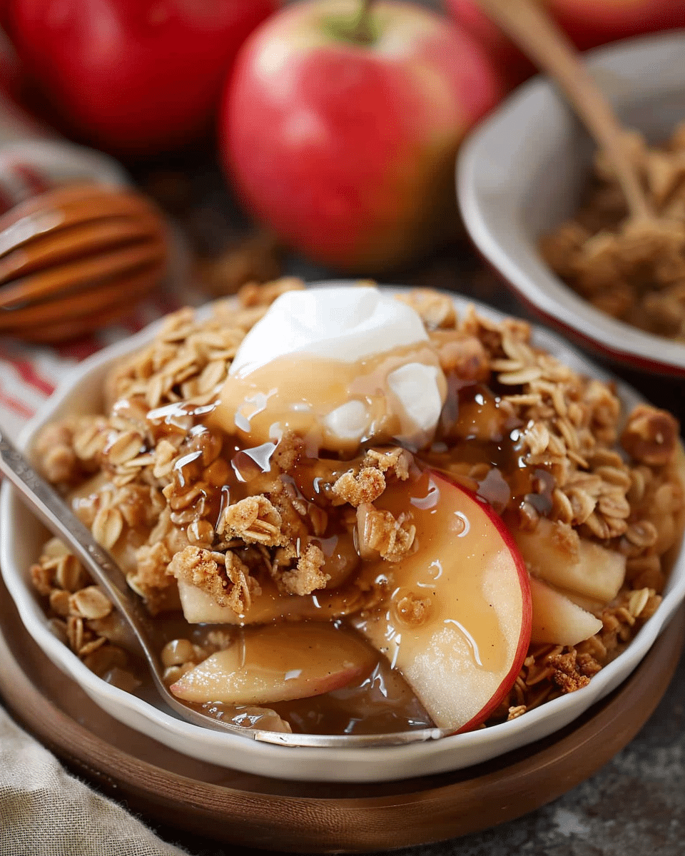 Because it comes together easily, delivers rich flavour, and offers a comforting contrast of soft baked fruit and crisp topping. The combination of apples, cinnamon, brown sugar and oats gives you flavour, texture and that “home‑baked” feel.