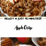 This classic apple crisp is made with tender spiced apples and a buttery oat topping. It’s the perfect comforting dessert for fall and is best served warm with a scoop of vanilla ice cream.