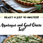 A savory asparagus and goat cheese tart with a flaky puff pastry crust, perfect for brunch or a light dinner.