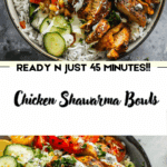 This Chicken Shawarma Bowl is a delightful fusion of Middle Eastern flavors and convenient, modern bowl‑style cooking. It delivers bold spice, fresh veggies, creamy sauces and satisfying grains — perfect for weeknight dinners or preparing ahead for lunches. Whether you’re feeding your family or meal‑prepping for the week, it offers both flavor and versatility. Enjoy!