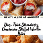 Deep-Fried Strawberry Cheesecake Stuffed Wonton Bites are an irresistible dessert that combines the best of both creamy and crunchy worlds. Whether you’re entertaining guests or satisfying a sweet craving, these delightful treats are easy to make and impossible to resist. Try them once, and they’re sure to become a favorite in your dessert rotation.