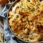 This French Onion Chicken Orzo Casserole is a perfect blend of homey comfort and gourmet flavor: caramelized onions, tender chicken, creamy orzo and gooey melted cheese—all baked together into one satisfying dish. Whether you’re preparing it for a weeknight dinner or an easy entertaining option, its one‑pan convenience and make‑ahead flexibility make it a winner. Give it a try and make it your next go‑to for cozy dinners.