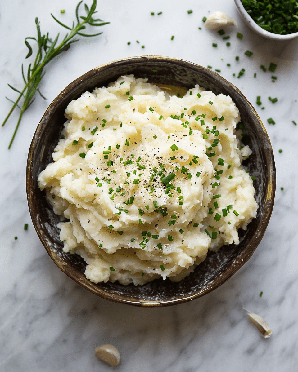 Creamy garlic mashed potatoes made with butter, cream, and roasted garlic for a rich and comforting side dish. Perfectly fluffy and flavorful, they pair well with any main course.