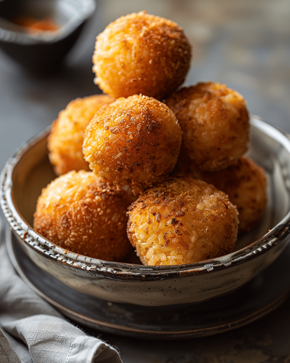 This recipe brings together two comfort food favorites in one unforgettable bite. The creamy risotto absorbs the rich, savory-sweet flavors of Japanese curry, creating a deeply satisfying base. Chilling the rice before shaping ensures the arancini hold together beautifully, while frying gives them a crisp golden shell. Whether you’re serving guests or treating yourself, these arancini feel special without being overly complicated.