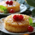 These delightful mini pineapple upside-down cakes are quick and easy to make, featuring a buttery brown sugar topping, sweet pineapple slices, and cherries for a perfect individual dessert.
