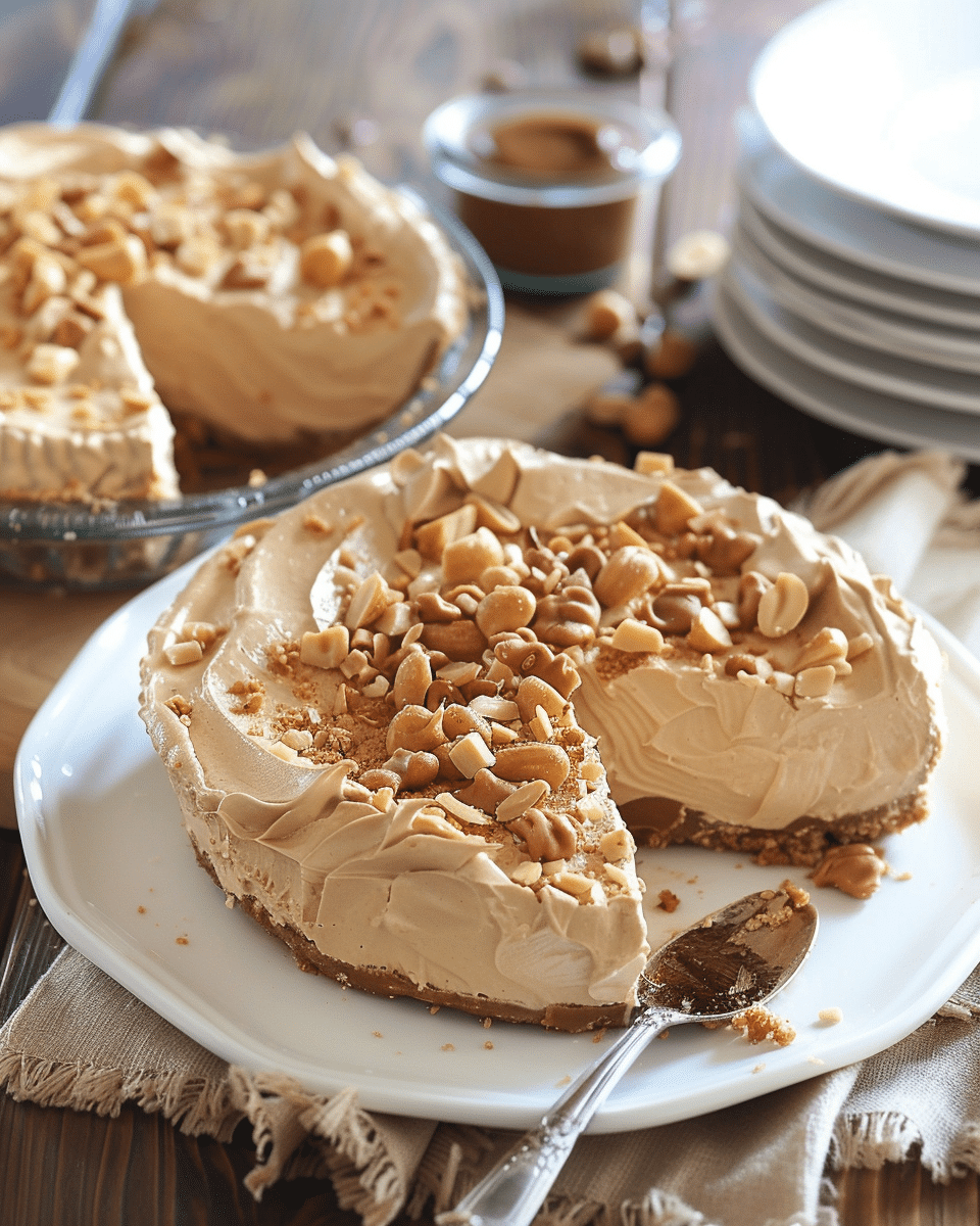 This no-bake peanut butter pie is a creamy, dreamy dessert made with a graham cracker crust, rich peanut butter filling, and topped with whipped cream and peanut butter cups. It’s easy to prepare and perfect for any peanut butter lover.