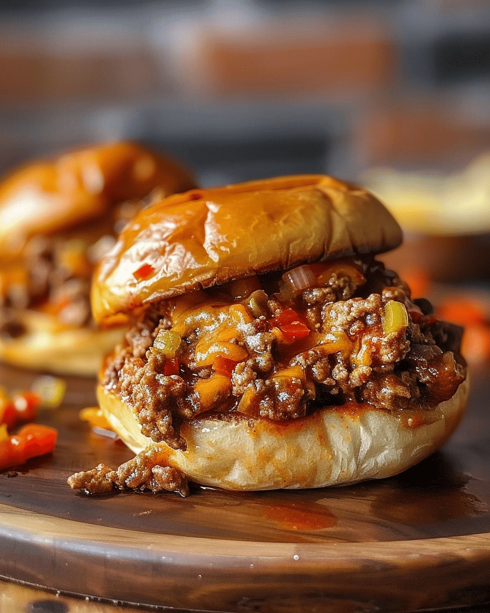 A delicious twist on two classics, these Philly Cheese Steak Sloppy Joes combine seasoned ground beef, sautéed veggies, and melty provolone cheese, all served on toasted brioche buns for a quick and hearty meal.