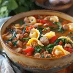A hearty and comforting soup loaded with turkey sausage, tender cheese tortellini, white beans, and fresh spinach in a flavorful tomato broth. Perfect for an easy, satisfying weeknight meal.