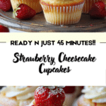 These Strawberry Cheesecake Cupcakes combine a buttery graham cracker crust with a creamy strawberry-infused cheesecake filling, topped with a fresh strawberry compote.