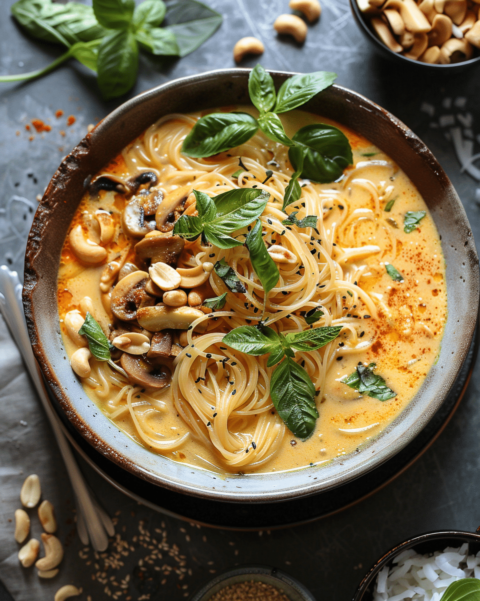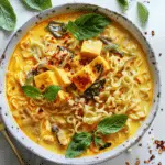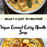 A comforting vegan coconut curry noodle soup packed with bold spices, creamy coconut milk, and tender noodles. Perfect for a cozy, flavorful meal with a balance of heat and richness.