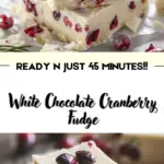 This White Chocolate Cranberry Fudge is a festive and easy no-bake treat made with just five ingredients. Creamy white chocolate and sweetened condensed milk form the rich base, studded with tart dried cranberries for a perfect holiday flavor.
