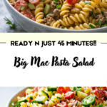Big Mac Pasta Salad is a creative and satisfying dish that captures the flavors of a classic burger in a refreshing, shareable format. With its savory beef, crisp vegetables, creamy dressing, and cheesy goodness, it’s sure to become a go-to recipe for gatherings and weeknight meals alike. Once you try it, you’ll love having this fun and flavorful salad in your regular rotation.