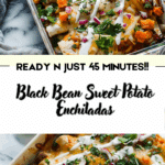 These Black Bean & Sweet Potato Enchiladas are hearty, flavorful, and satisfying, packed with nutritious ingredients like roasted sweet potatoes, black beans, and homemade enchilada sauce. Perfect for a wholesome vegetarian dinner.