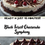 The Black Forest Cheesecake Symphony is a rich, elegant dessert that combines chocolate, cherries, and creamy cheesecake into one unforgettable treat. Whether you’re celebrating or just craving something indulgent, this recipe delivers with bold flavors and beautiful presentation. Prepare it in advance for ease and enjoy a slice of dessert perfection.