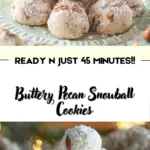 These Buttery Pecan Snowball Cookies are melt-in-your-mouth treats loaded with finely chopped pecans and coated in powdered sugar. Perfect for holidays or any special occasion.