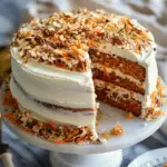 A moist and warmly spiced carrot cake layered with creamy, tangy cream cheese frosting and crunchy pecans. Perfect for celebrations or a comforting homemade dessert.