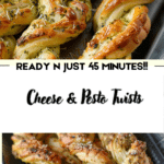These Cheese and Pesto Twists are a deliciously easy and impressive snack or appetizer made with puff pastry, cheese, and pesto, perfect for parties or casual gatherings.