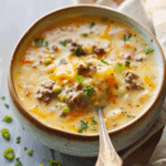 This Cheeseburger Soup is a rich, hearty, and comforting dish loaded with ground beef, potatoes, carrots, and creamy cheese flavor—perfect for a cozy family dinner.