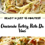 Cheesecake Factory Pasta Da Vinci is a comforting yet elegant pasta dish that brings restaurant-style flavor right into your kitchen. With its creamy sauce, tender chicken, and savory mushrooms, it’s a meal that feels indulgent without being complicated. Whether you’re cooking for family or entertaining guests, this recipe is sure to become a favorite in your dinner rotation.