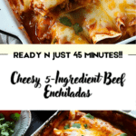 Cheesy 5-Ingredient Beef Enchiladas are a simple yet satisfying meal that proves great flavor doesn’t require a long list of ingredients. With minimal prep, quick cooking time, and a rich combination of seasoned beef, tortillas, sauce, and melted cheese, this dish is perfect for busy weeknights or casual family dinners. Once you try it, it may quickly become one of your go-to comfort food recipes.