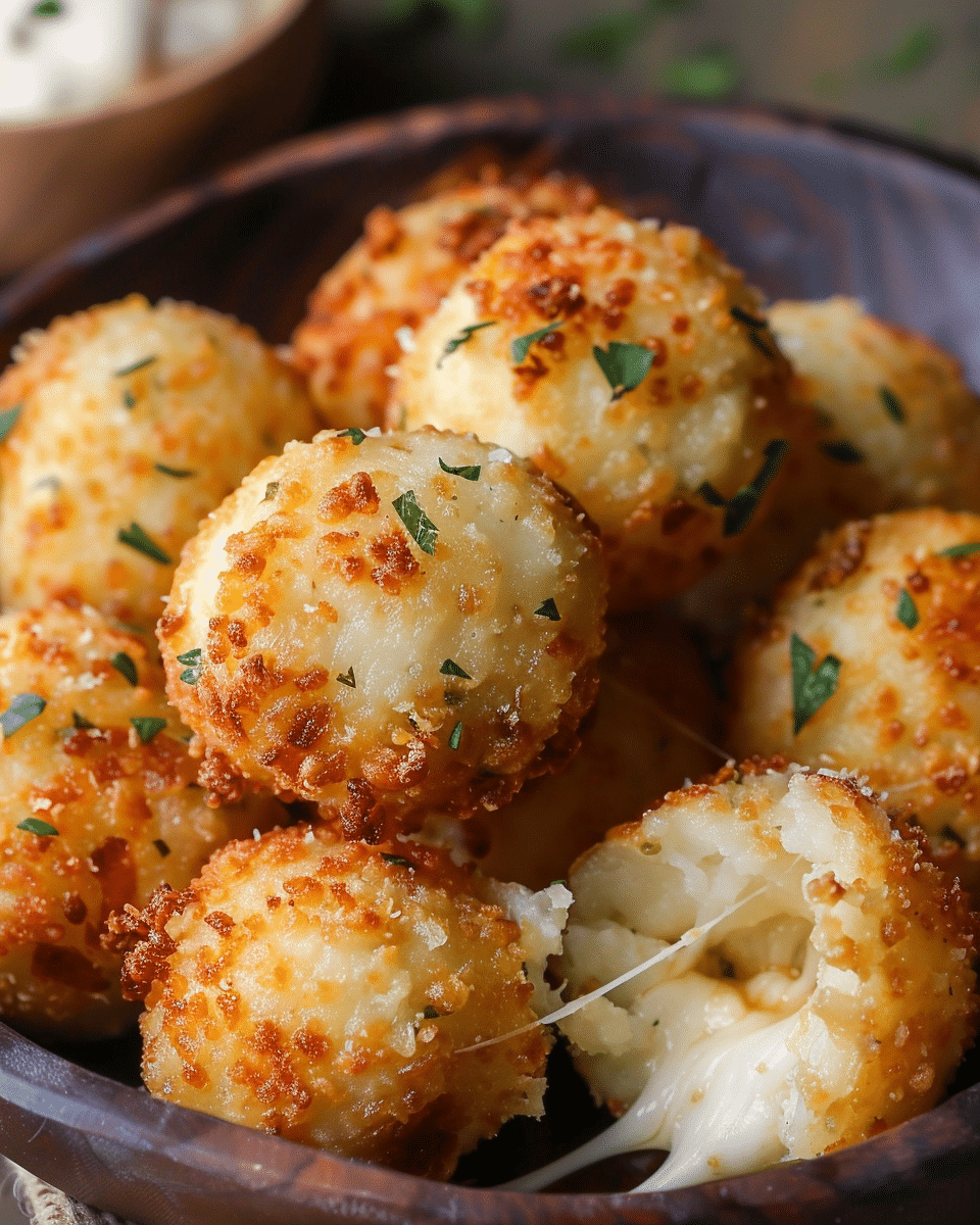 Crispy on the outside and creamy on the inside, these Cheesy Garlic Parmesan Potato Balls are packed with roasted garlic flavor, gooey mozzarella, and savory parmesan. Perfect as an appetizer, party snack, or comforting side dish.