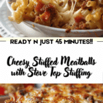 This recipe is the definition of quick, easy, and family-approved. Using Kraft’s Stove Top Stuffing as a binding base adds flavor without the need for breadcrumbs or extra seasoning. The meatballs are juicy, cheesy, and incredibly versatile—perfect for serving with pasta, in subs, or on their own. It’s a great solution for busy families who want hearty meals without spending hours in the kitchen.