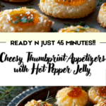 Cheesy Thumbprint Appetizers with Hot Pepper Jelly are a simple yet impressive snack that combines rich cheddar flavor with a sweet and spicy topping. With their crisp edges, soft cheesy centers, and vibrant pepper jelly finish, they deliver a delightful contrast in every bite. Quick to prepare and easy to customize, these savory bites are perfect for entertaining, holiday gatherings, or anytime you want a crowd-pleasing appetizer.